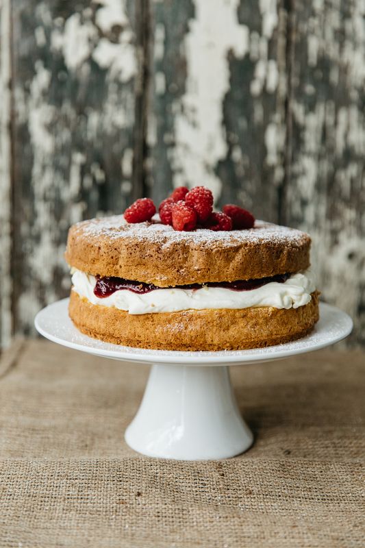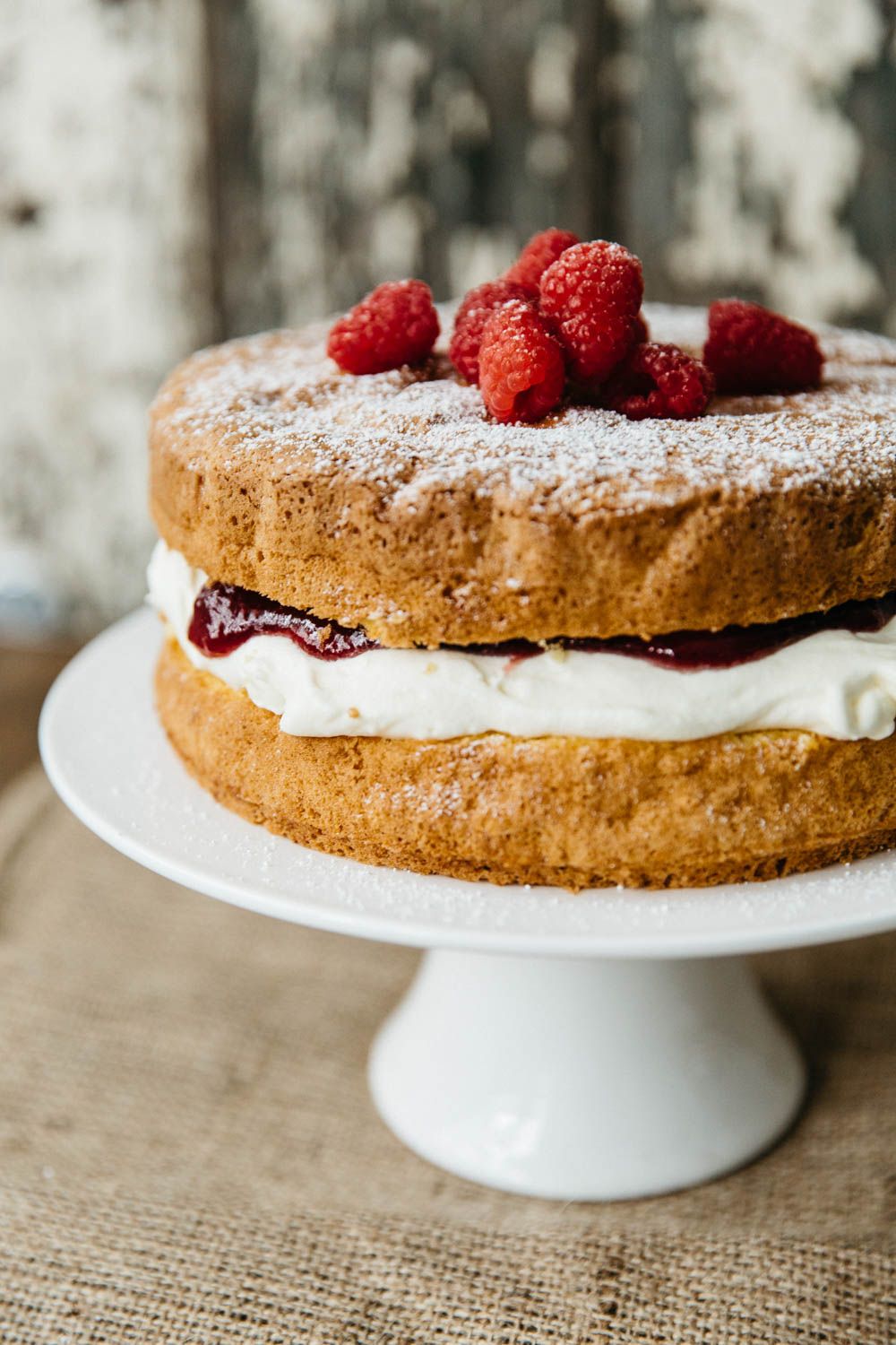 This is the sponge-cake recipe you need for light as air, delicious sponge just like grandmothers seem to know how to make by pure instinct. Paired here with vanilla cream and raspberry compote - it's a classic and easier than you may think.