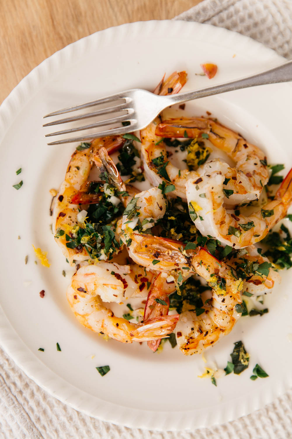 Perfect for sunny days, there’s nothing quite like a prawn (shrimp) on the barbecue to keep everyone happy. These are marinated in garlic, lemon and chilli, then topped with a lemon and orange gremolata, that provides a zingy flavor that takes the humble prawn to the next level.