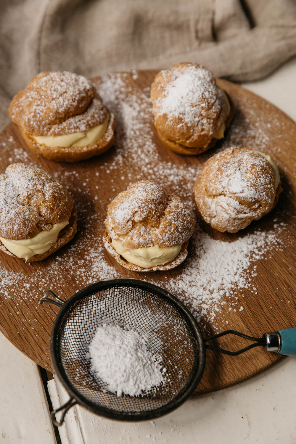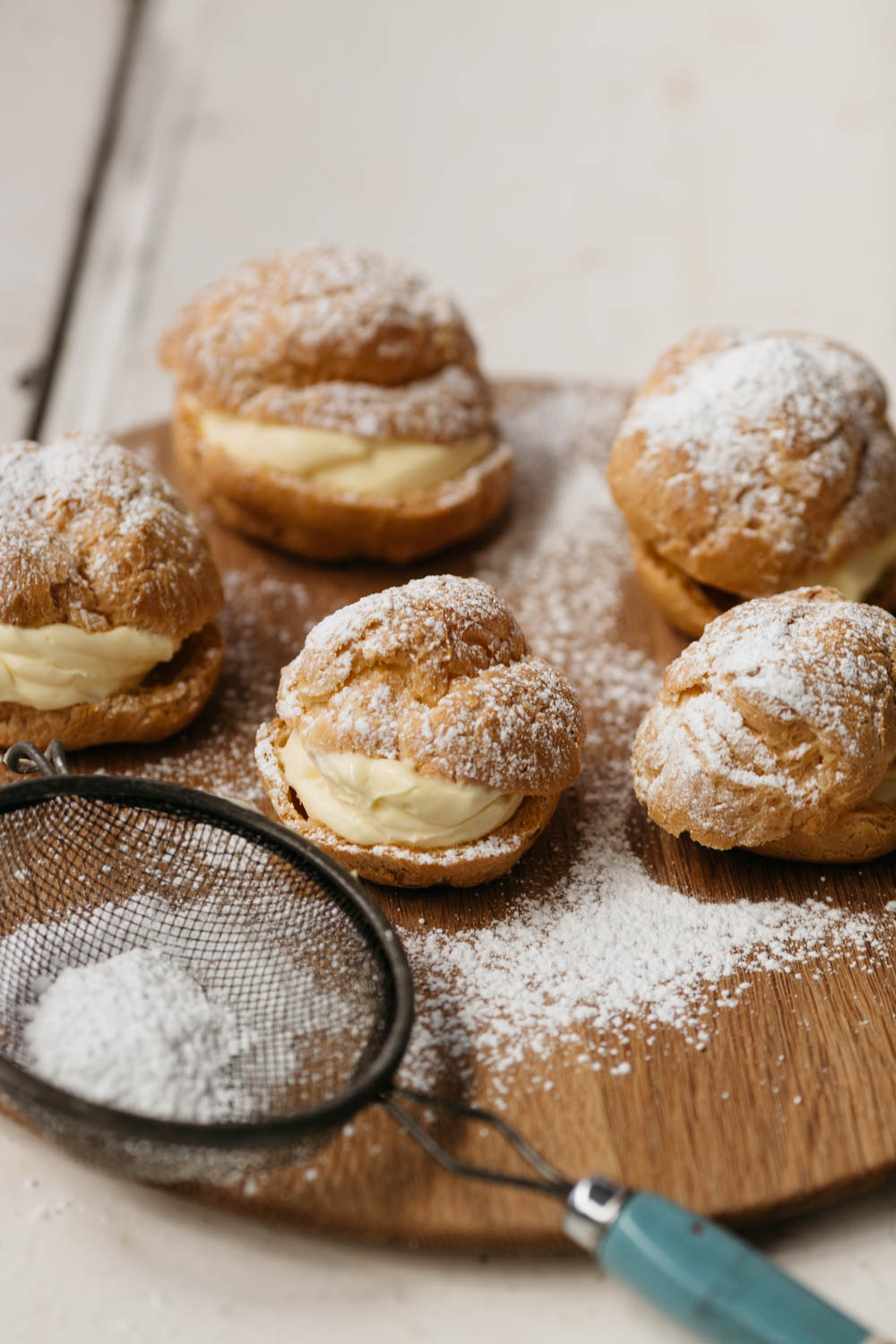 - Cut the puffs in half and fill with the lemon mascarpone cream. Dust with icing sugar to serve.