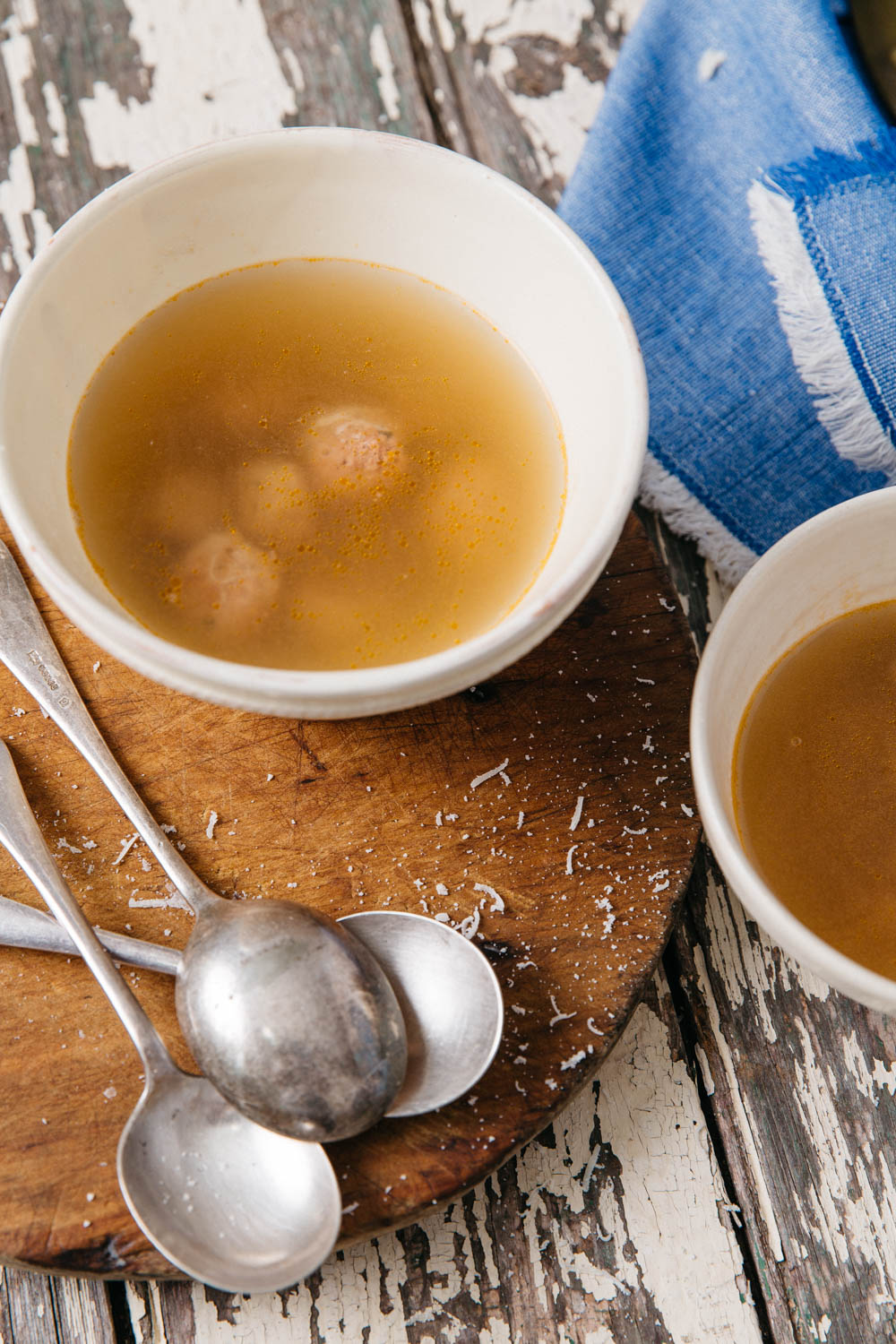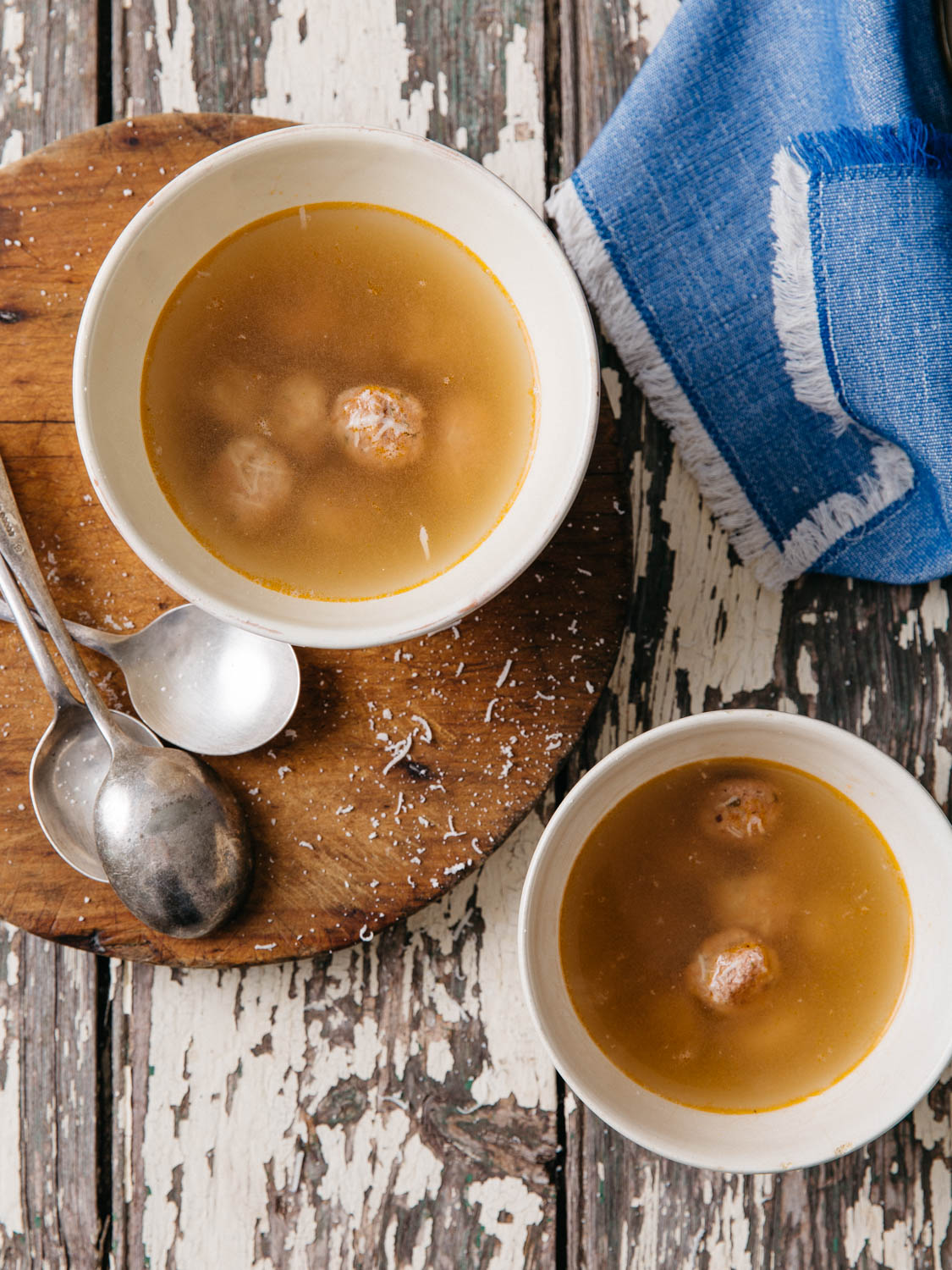 This soup is delicate, simple, yet hearty. The mini meatballs infused with garlic, basil and Parmesan are poached in the warm comforting chicken broth making this a meaty burst of flavour in every spoonful.