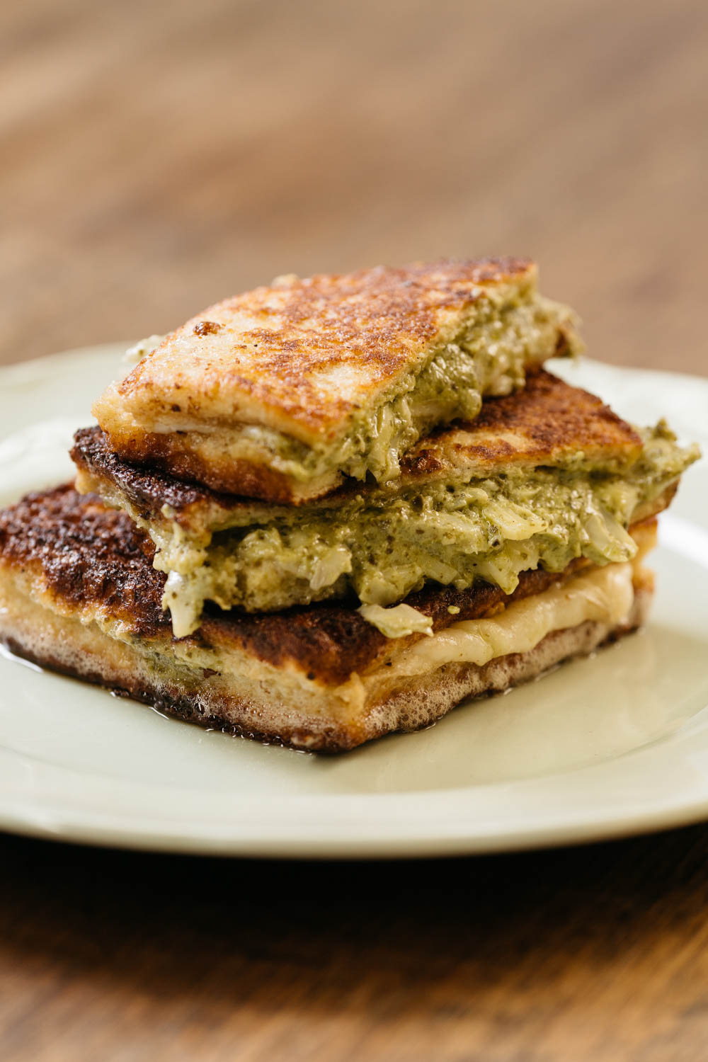 I love the combination of pesto and cheese. They would be good just on their own, but the artichokes add a certain meatiness and texture than really makes this something special. When you take a bite, you get a burst of intense herby flavour and the melting decadence of the cheese.