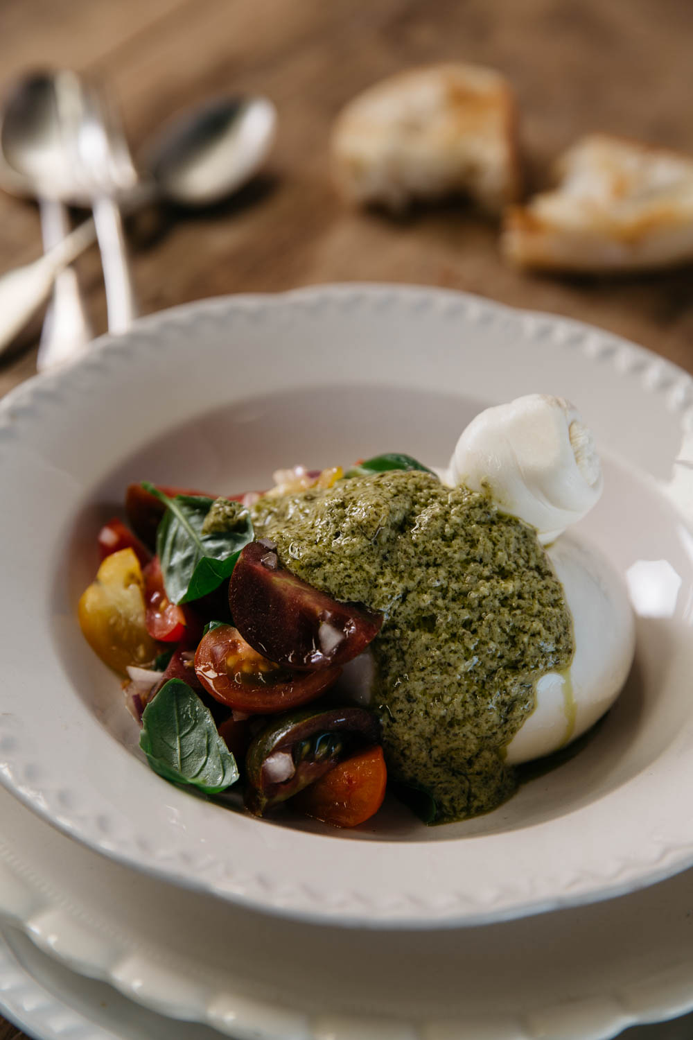 Burrata with Tomato Salsa and Basil Pesto