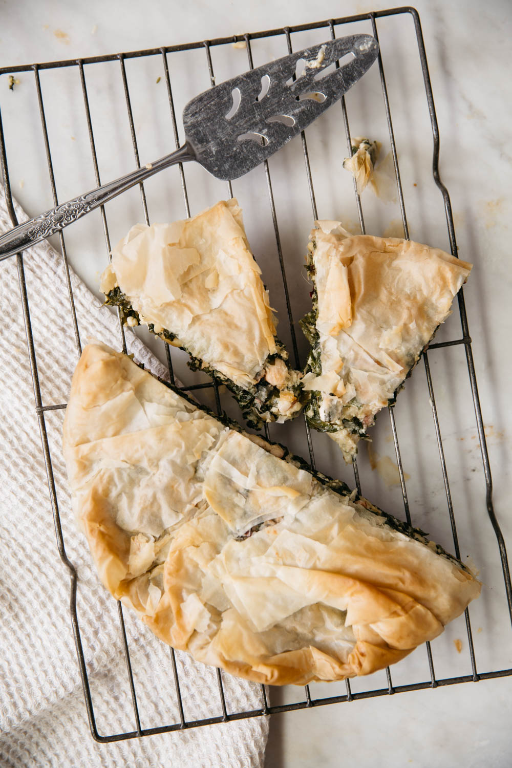 This pie is a take on the Greek spinach pie, spanakopita, but with an Italian twist.