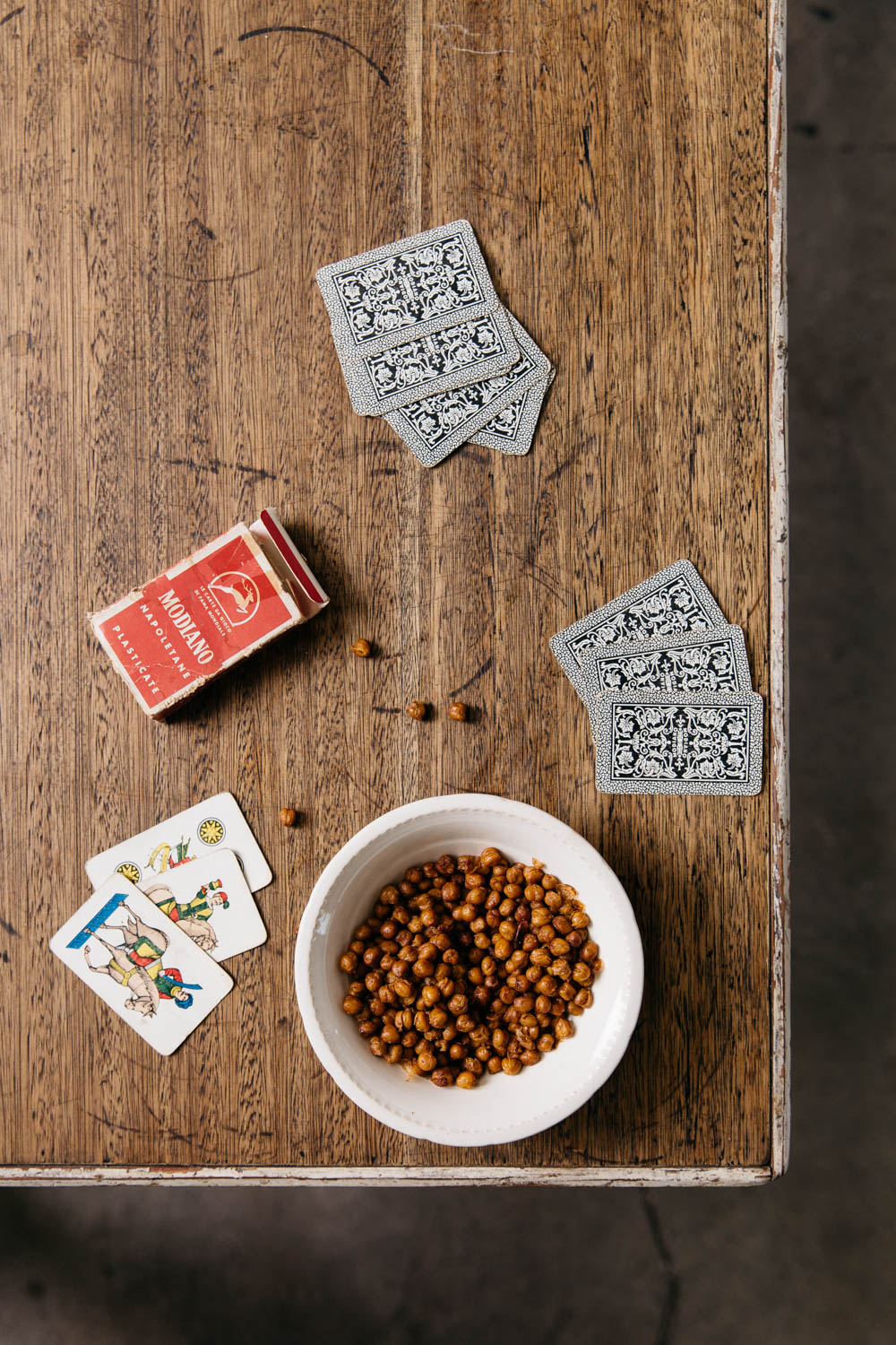 Inspired by the traditional dried chickpeas I watched the men at family gatherings eat while playing cards, these have more flavour and just as addictive.