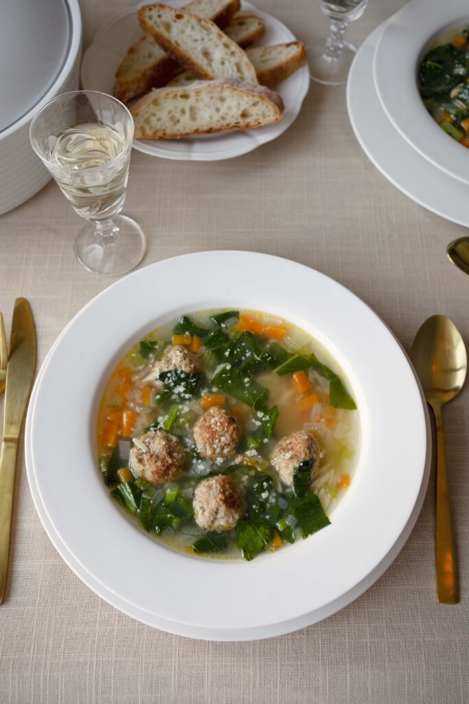 This classic Italian soup known as ‘Wedding Soup’ derives from its Italian name: ‘minestra mar-inata,’ meaning “married soup.” Rather than being a dish served at a wedding, it refers to the marriage of contrasting ingredients—the fresh green leafy vegetables and the hearty meat flavour from the meatballs, symbolising the union of the contrasting elements of…