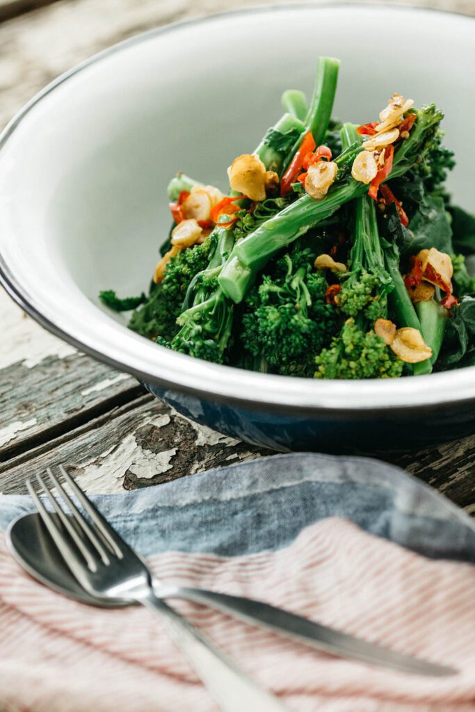 Broccolini with Leafy Greens, Garlic and Chilli