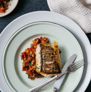 Pan Fried Fish with Caponata and Pinenuts
