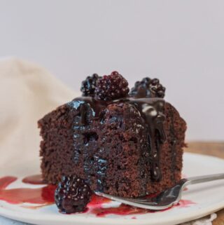 Chocolate Cake with Blackberries and Pomegranate Syrup