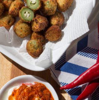 Fried Olives with Feta and Chilli Pesto