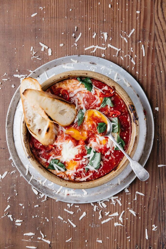 This is Southern Italian style breakfast at its best.  Eggs poached in a rich, gutsy red sauce that beg to be mopped up with crusty bread. You barely need a knife and fork! ‘Purgatory’ is the place Dante describes in his epic poem The Divine Comedy where people go to suffer for their evil acts…