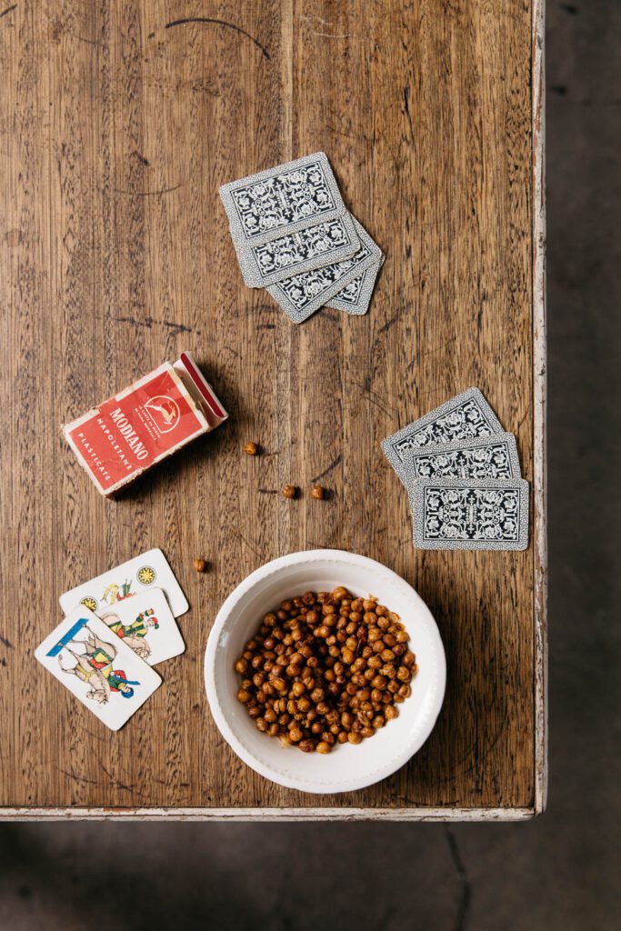 Next time you feel like reaching for a bag of crisps for that crunchy, spicy snack, make these instead.  Chickpeas roasted with chilli, paprika, fennel, then tossed with rosemary and lemon are little flavour bombs perfect for snacking on without the guilt. Inspired by the traditional dried chickpeas I watched the men at family gatherings…